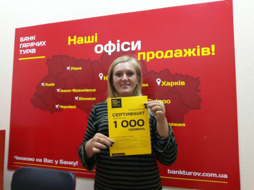 Преший раз зверталась до Банку гарячих турів у Києві. Сподобались привабливі ціни та сервіс у офісі, зручно обирати тури на сайті компанії. Чекаю щє більше пропозицій у майбутньому...