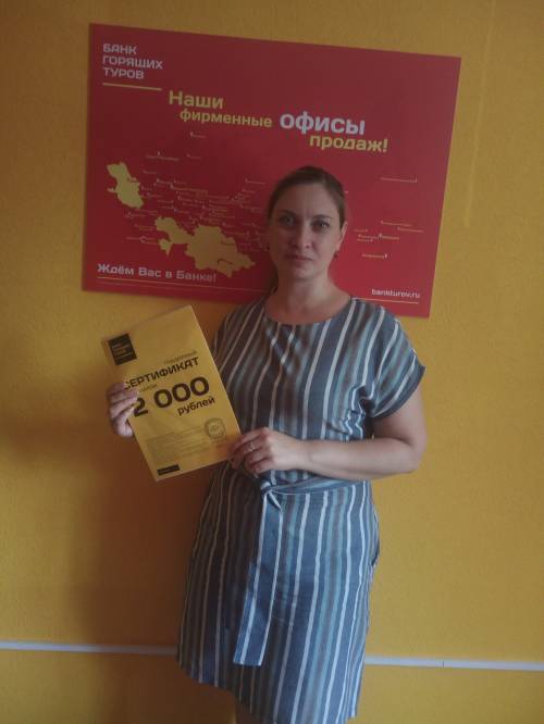 Первый раз приобрела тур компании Банк горящих туров в Харькове. Удобный сервис, на сайте легко подбирать тур. Жду в будущем возможности рассчитываться наличными в о...