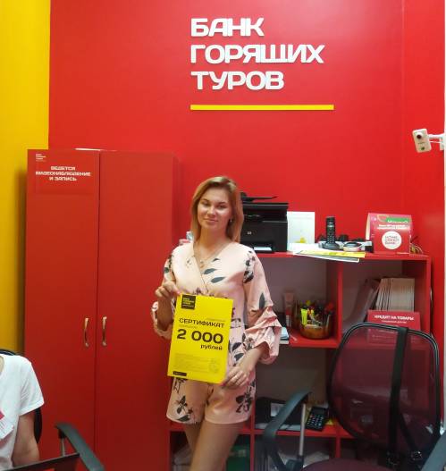 Второй раз приобрела тур в Банке горящих туров. Выбрала компанию по отзывам на интернет-сайтах. Понравился сервис в вашем офисе продаж. Жду от компании в будущем еще большего процв...